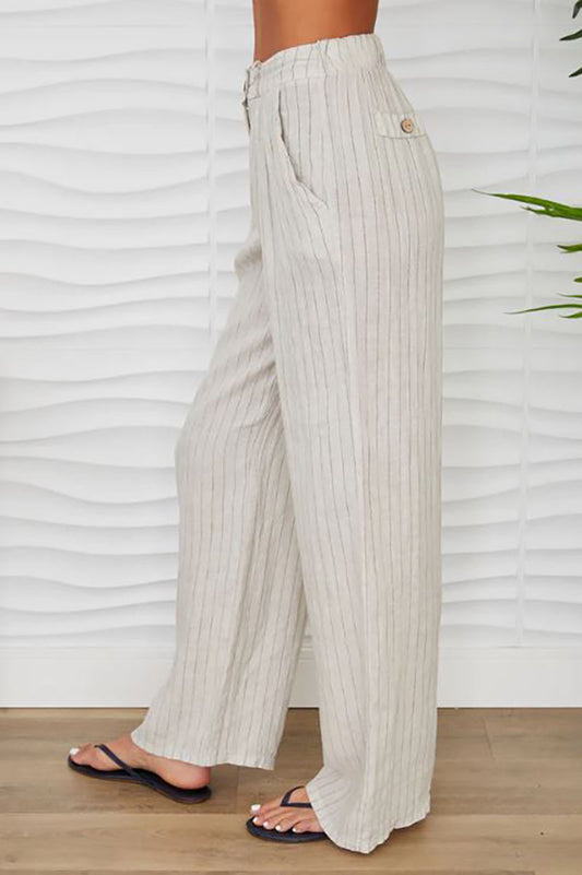 LINEN PINSTRIPE WIDE LEG TROUSER