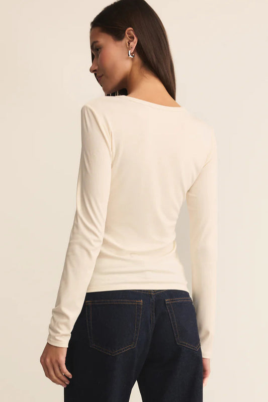 CLEAN LINE FRONT SHIRRED LONG SLEEVE TOP