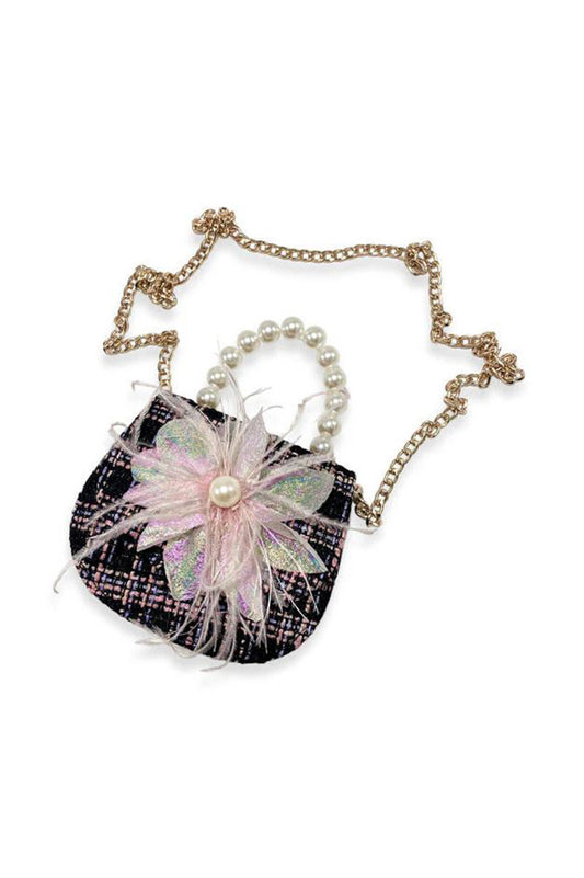 FEATHER FLORAL TWEED PURSE