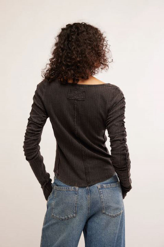 SOLID TWILL LONG SLEEVE BUTTON UP TOP