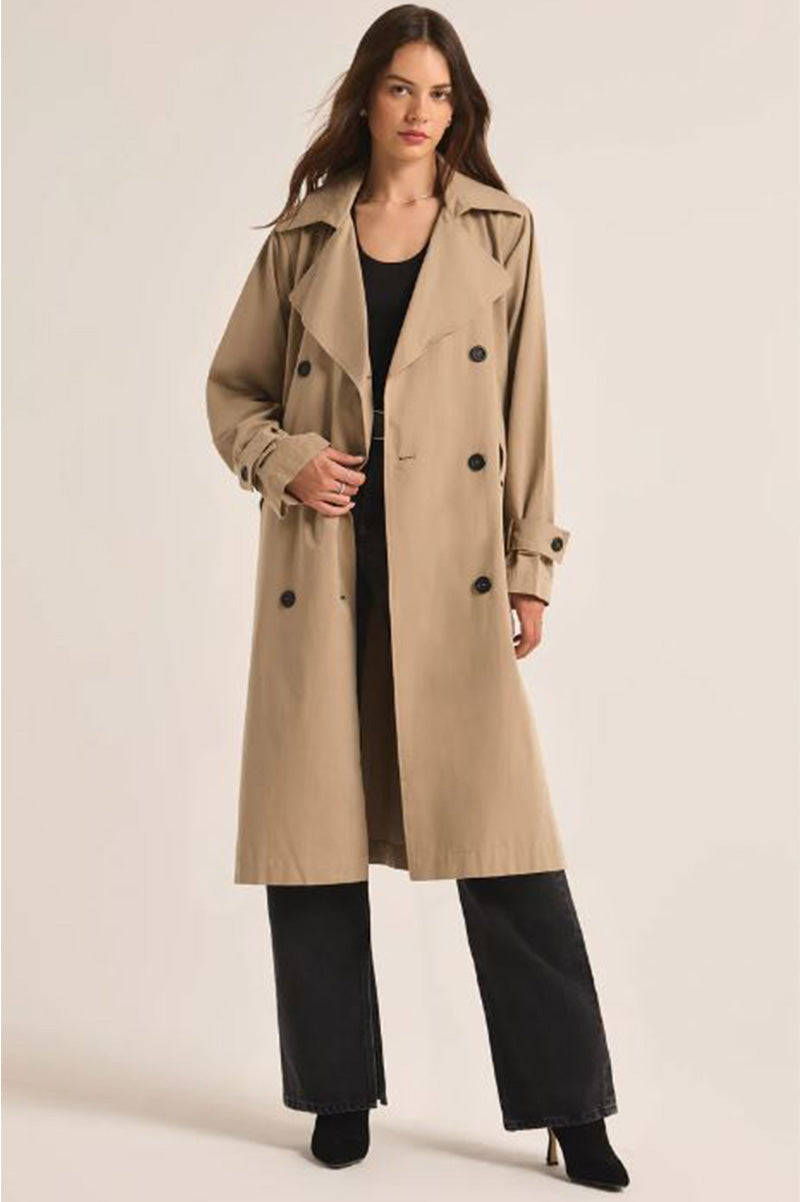 This midweight double-breasted trench coat feels soft to the touch yet durable and adds an elevated touch to any look with its notch collar, button front, and side seam pockets. Cinch the tie at the waist for a flattering silhouette that's perfect for any occasion.